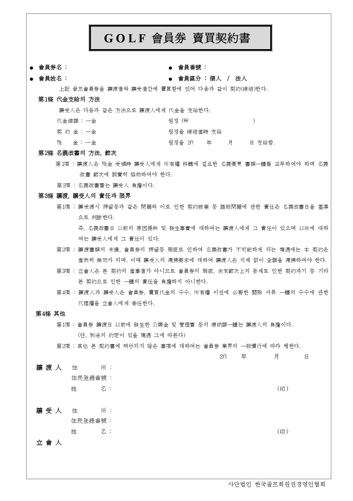골프 매매계약서