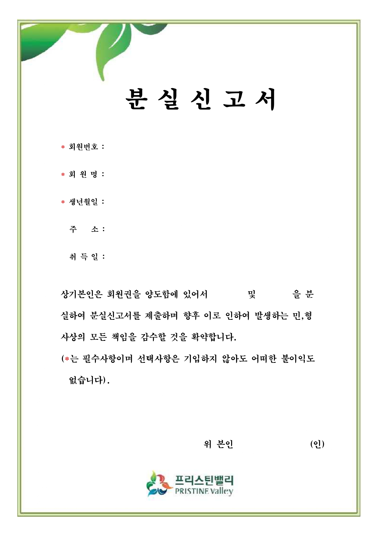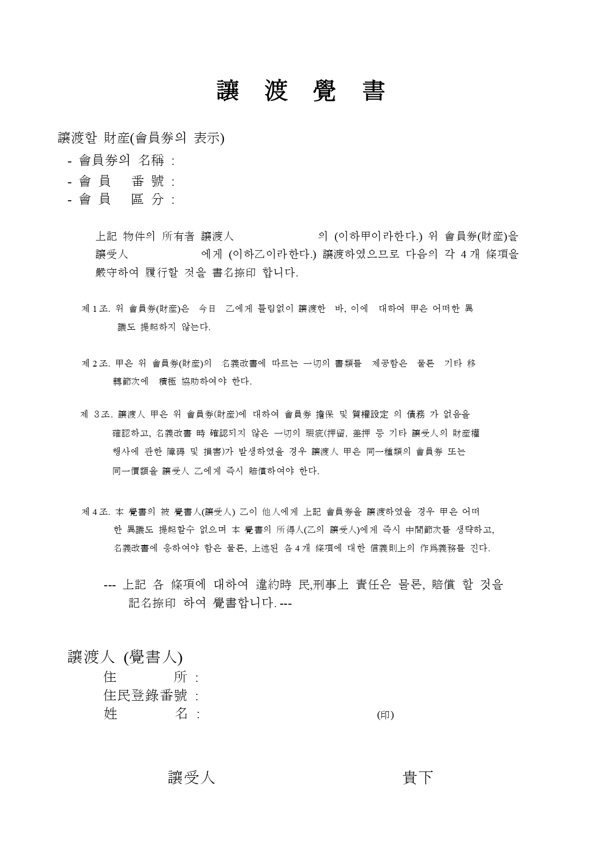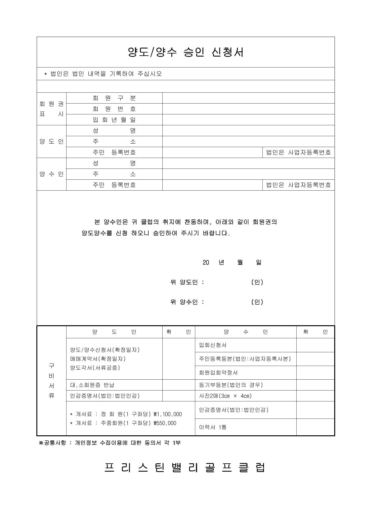 회원권 양도양수 승인신청서