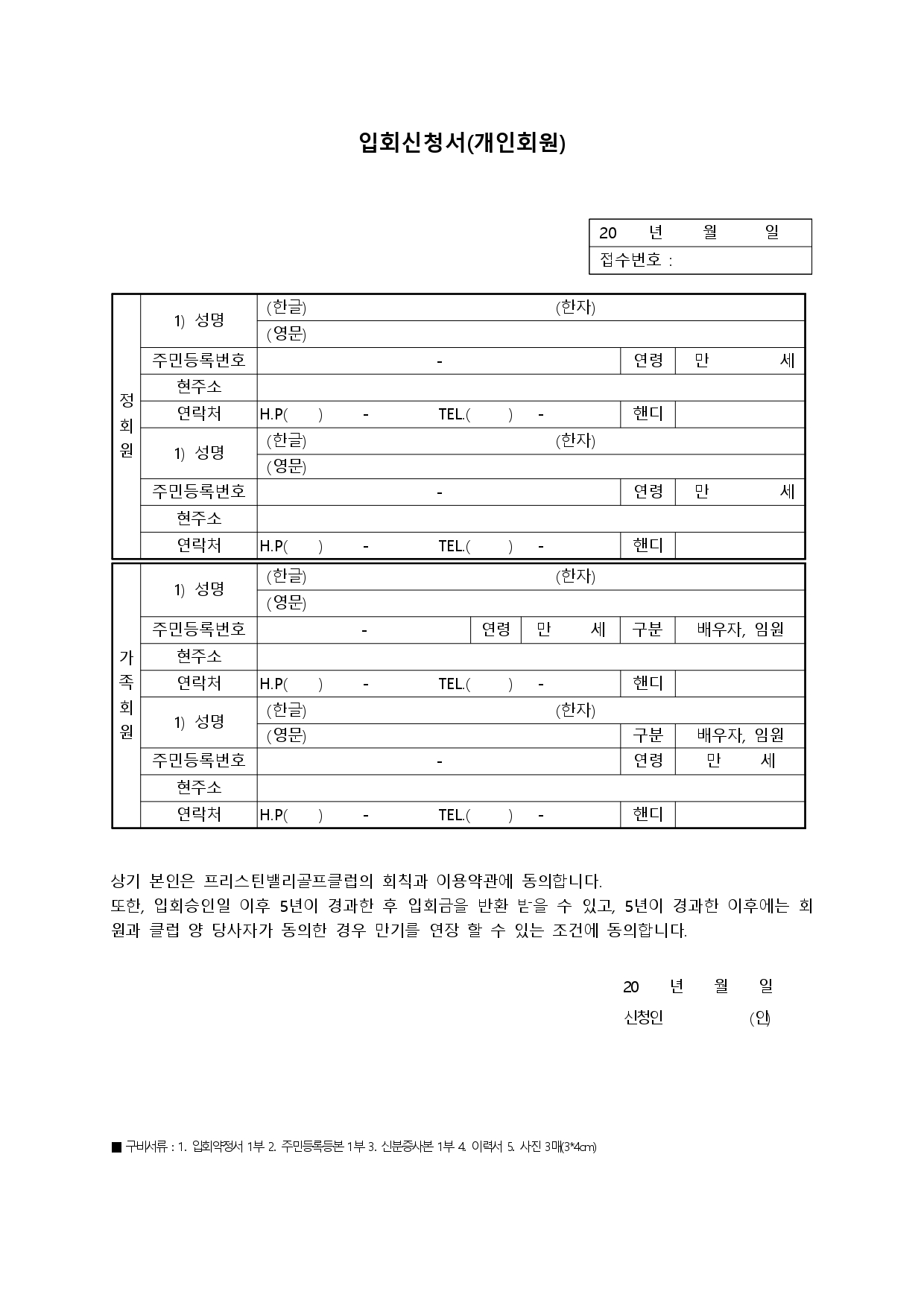 입회신청서(개인)