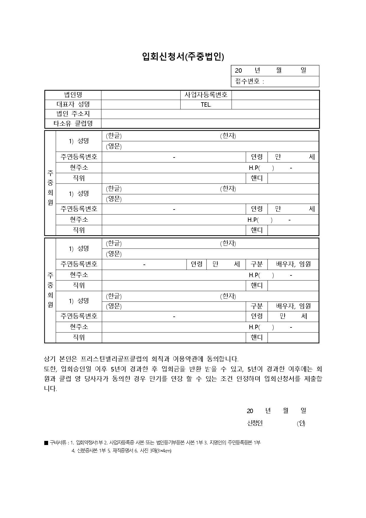 입회신청서(법인)