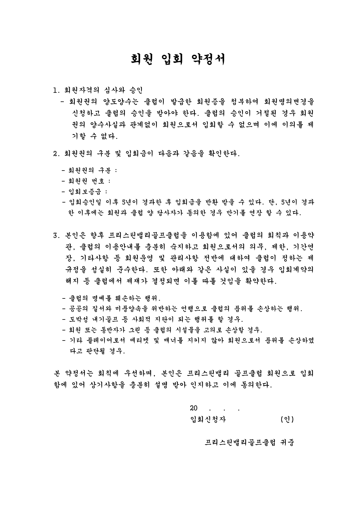 입회약정서